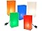 - WHAT'S INCLUDED: You get 10 durable plastic luminaria lanterns that measure 5.75" long, 3.5" wide, and 10" tall, 10 anchor stakes, and 1 UL listed electric cord with 10 multicolored bulbs. Bags are weather-resistant and kit is for outdoor use only.