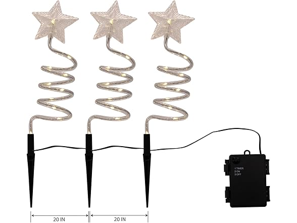 LumaBase 61703 Battery Operated Spiral Star Yard Lights - Set of 3