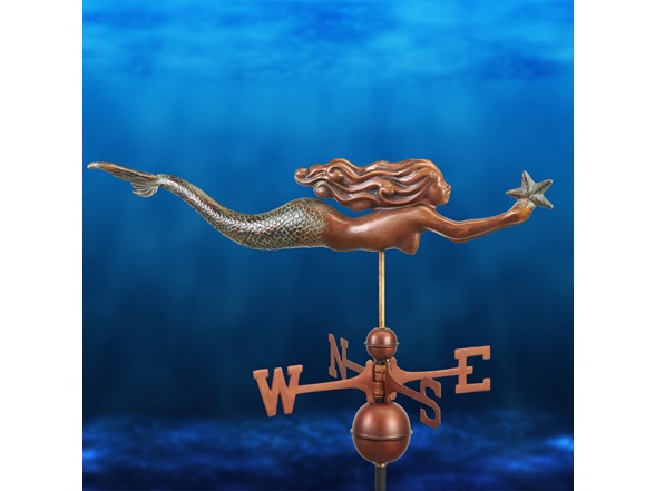 - (1) Mermaid with Starfish Weathervane - Pure Copper Hand Finished Multi-Color Patina by Good Directions