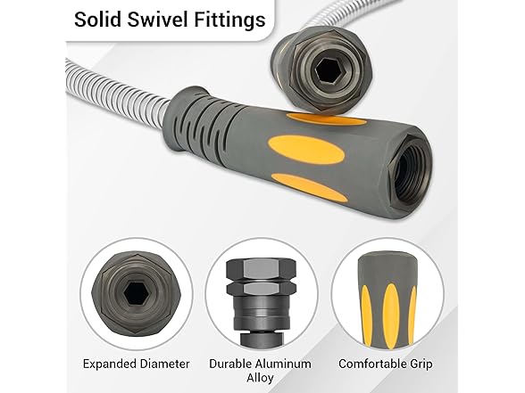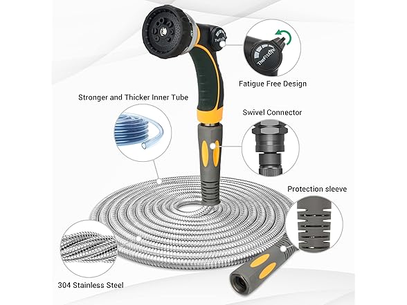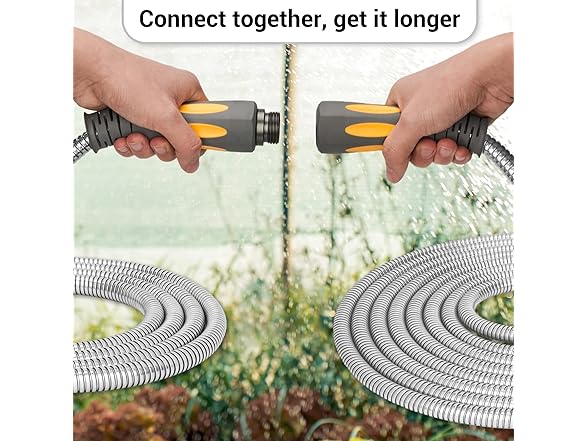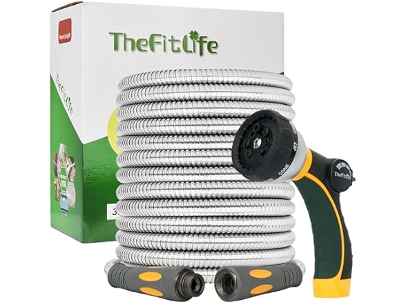 TheFitLife Flexible Metal Garden Hose - 50 FT Lightweight Stainless Steel Water Hose with Solid Fittings and Sprayer Nozzle - Leak Proof, Kink Free, Anti-rust, Large Diameter, Durable and Easy Storage
