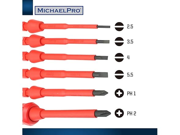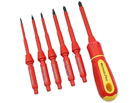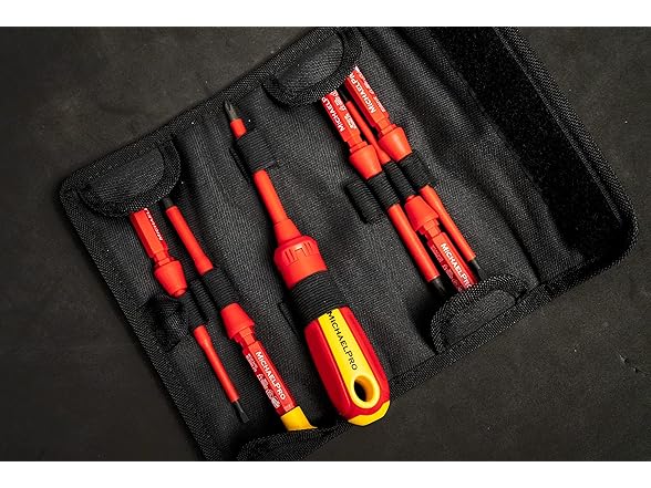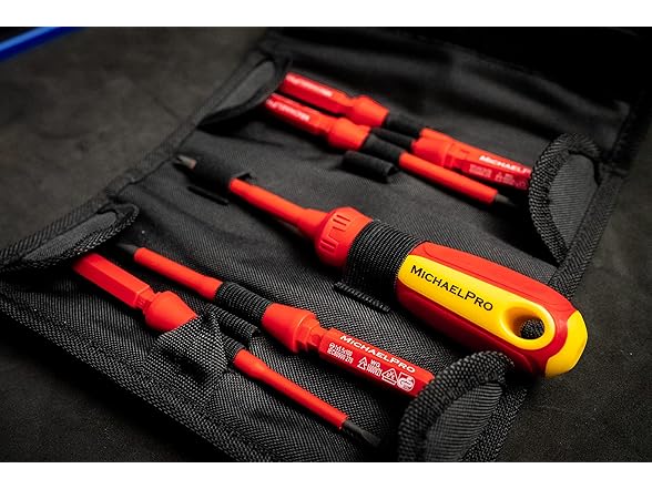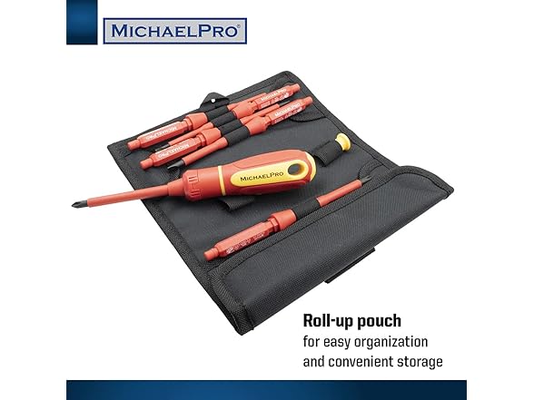 MichaelPro MP002021 Insulated Screwdriver Set, 1000 Volt Insulated Screwdriver with Interchangeable Blades, Tool Pouch, Electrician Screwdrivers Insulated Tools, 8-Piece Flathead and Phillips Screwdriver Set