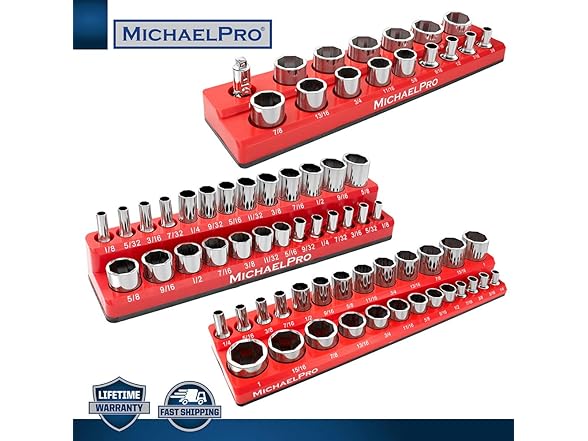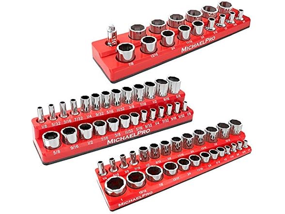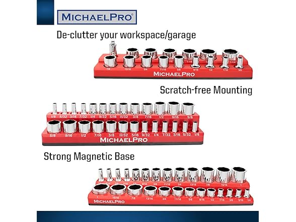 - 【High Capacity】These MichaelPro Magnetic Socket Holders can store up to 68 of your 1/4", 3/8", and 1/2" drives SAE sockets. That means you can get all your sockets organized and tidy. No more messy tools!