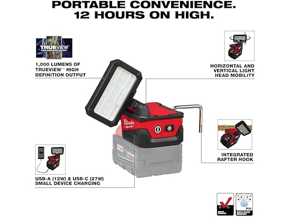 Milwaukee 2359-20 M18 Rover Compact Folding Flood Light with USB Charging (Bare Tool) + TPT Premium cart