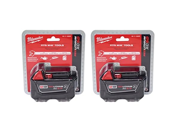 Milwaukee 48-11-1850R M18 18V 5Ah XC Extended Capacity Resistant Battery 2 Pack