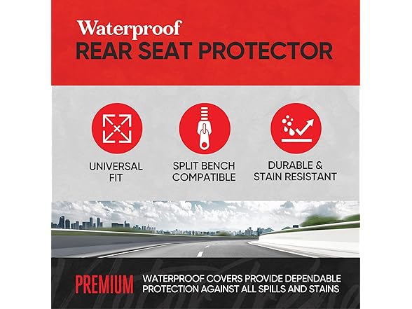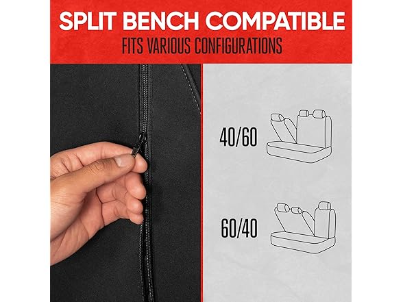 - WATERPROOF NEOPRENE LINING: The backseat split bench cover features a waterproof neoprene foam lining, ensuring maximum protection against accidental spills. Ideal for both cars and trucks, this durable seat cover for car keeps your rear seats safe from liquid damage, offering peace of mind and long-lasting protection. The back seat protector is perfect for those looking to protect their vehicle's interior from water, stains, and everyday wear.