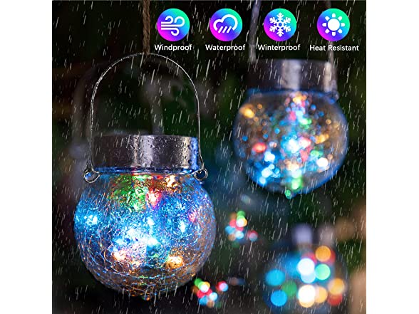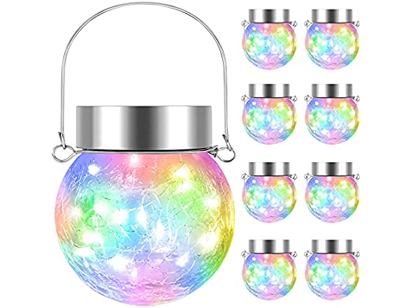 • Best Decorative Solar Garden Lights & Gifts - Our multi-colored solar hanging lights are 20 LEDs, which is much brighter than those with 10 LEDs, more deal for any indoor & outdoor ornament. The solar power lights crackle glass provides a crackle reflection of flower-like pattern, is beautiful enough to decorate your garden, patio, lawn, front yard, backyard, fence, balcony, path, driveway, walkway, sideway, tree branch, lantern stakes, etc.