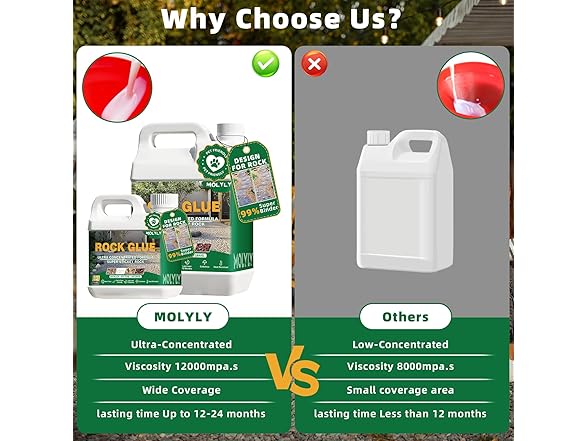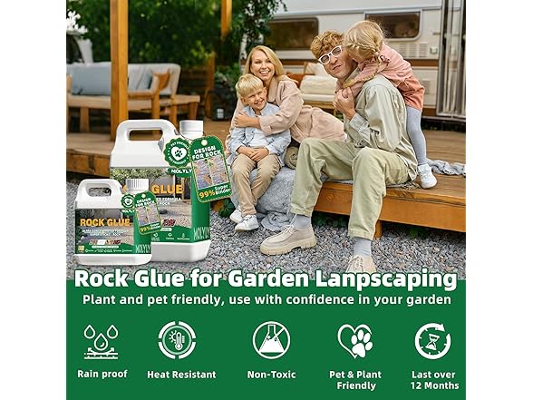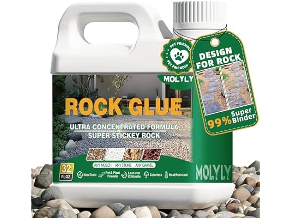 - 【Suitable for All Types of Landscaping】MOLYLY Rock Glue is suitable for various landscaping materials such as gravel, pebbles, stones, wood chips, rubber, and pine needles etc. It can be used in gardens, patios, paths, patios, and flower beds etc. After drying, it will not affect the growth of surrounding plants or their water absorption. Enhanced stability against harsh weather, protecting your garden and plants