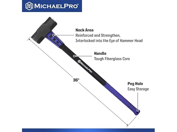 MichaelPro MP004018 10 lb Sledge Hammer, 36-Inch Ultimate Shock Absorbing Fiberglass Handle, Gives You All the Leverage You Need