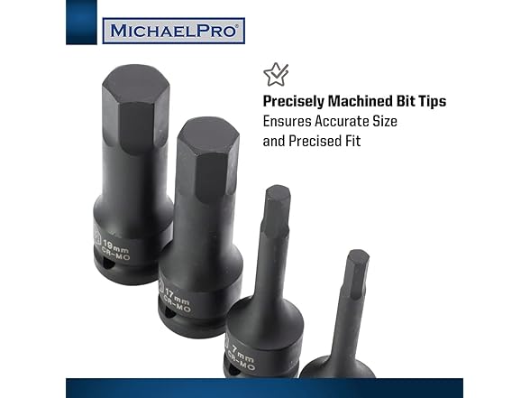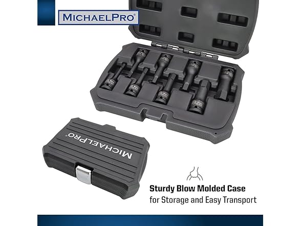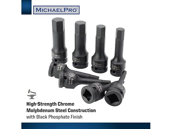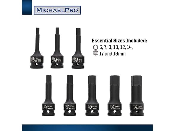 MichaelPro MP005027 8Pc 1/2” Drive Hex Bit Socket Set, 6 to 19mm, Impact Metric Socket, CR-Mo | Sturdy Storage Case Included