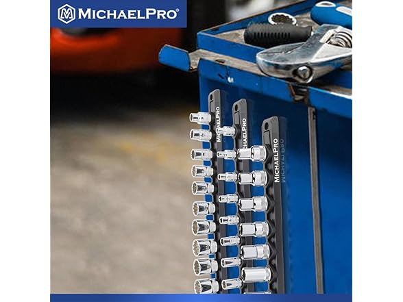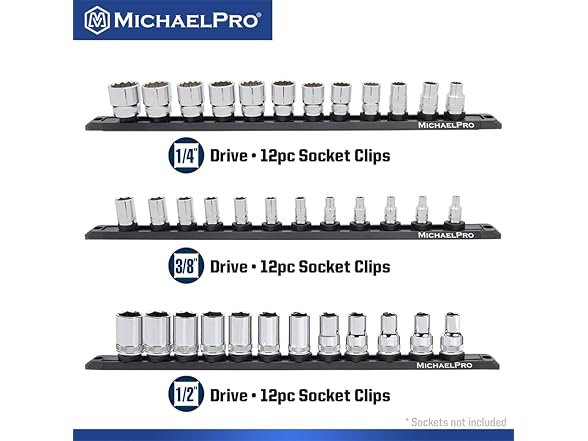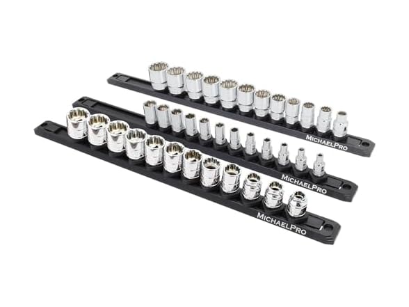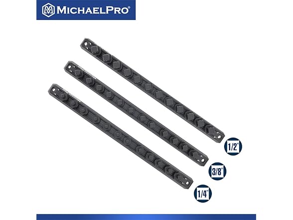 MichaelPro MP014040 3-Piece Quick Lock Magnetic So3-Piece Quick Lock Magnetic Socket Organizer Rail Set- 1/4-inch, 3/8-Inch, and 1/2-Inch Drive Tool Socket Organizers, Hold 36 Sockets, Heavy Duty Aluminum Magnetic Socket Storage