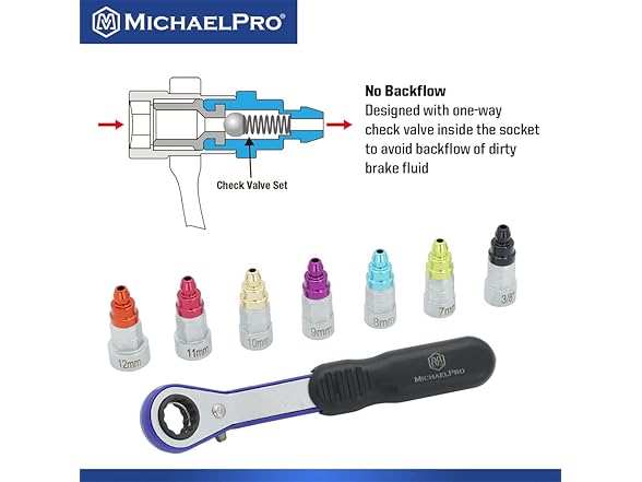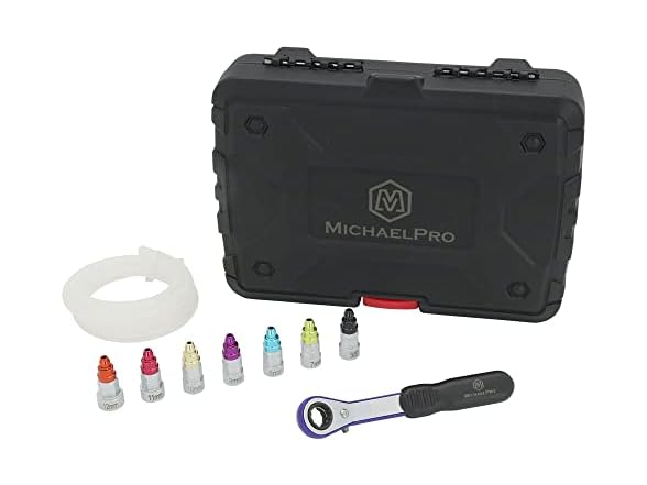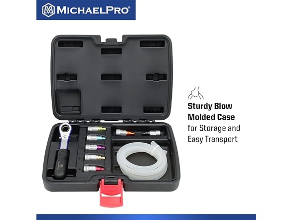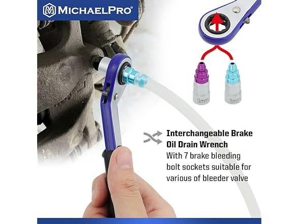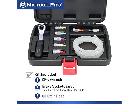 MichaelPro MP019003 Mechanic’s Brake Bleeder Wrench Set with 7mm to 12mm & 3/8-Inch 12-Point Socket, 47-Inch Length Oil Drain Hose Included