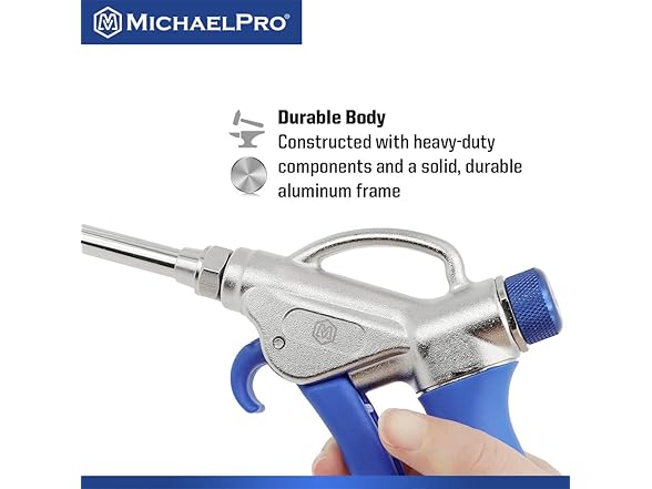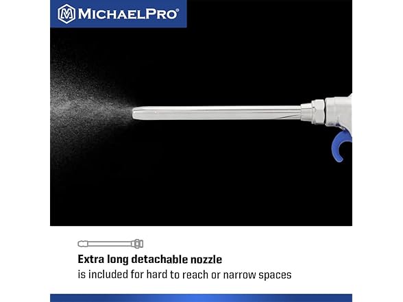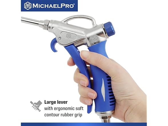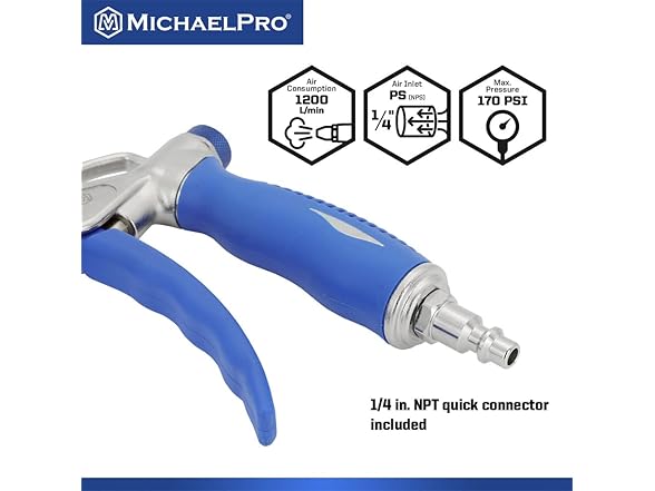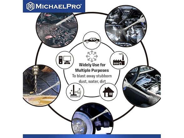 - 【POWERFUL】With a maximum pressure of 170 PSI, the MichaelPro 2-Way Air Blow Gun delivers a powerful and efficient air stream for quick and effective cleaning and drying of hard-to-reach areas. Use it to blow away stubborn dust, debris, water, dirt and other objects off all kinds of vehicles, materials, machinery or other working places. Suitable for vehicles, computers, industrial equipment cleaning etc.