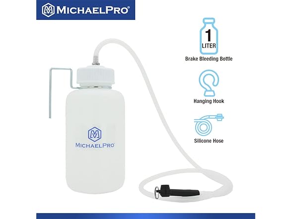 MichaelPro MP019006 34oz (1000cc) Manual Brake Bleeder Bottle, for Containing Used Brake Fluids, A Rubber Connector That Fits Most Bleeder Screws