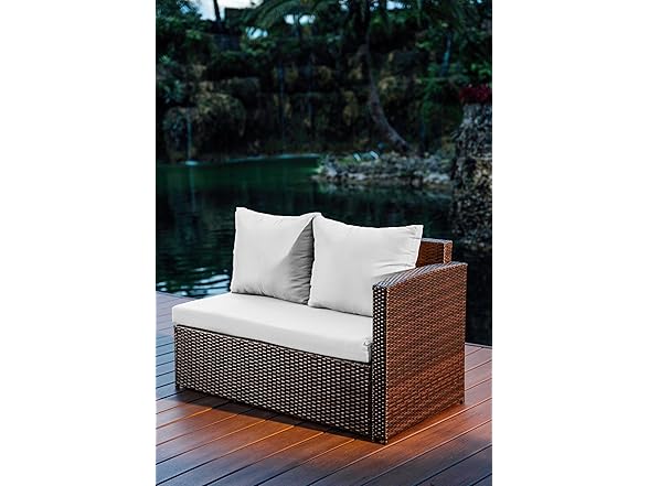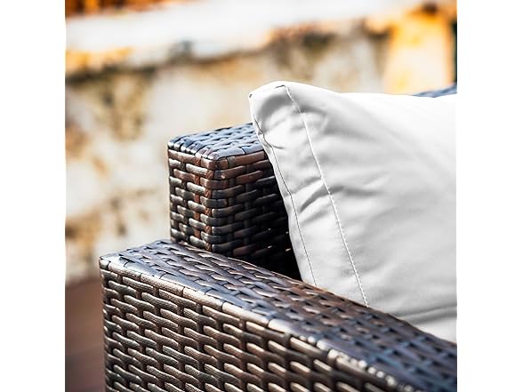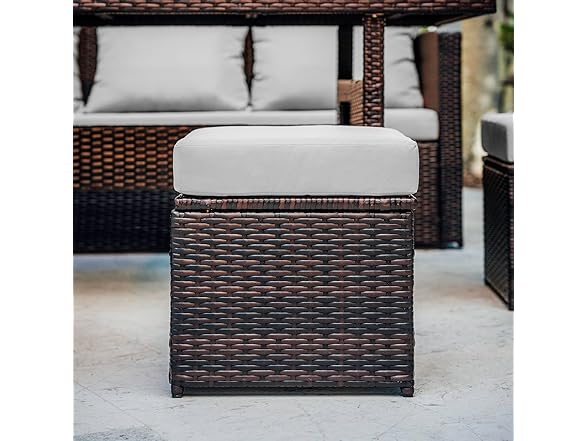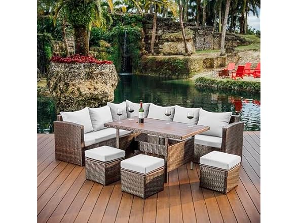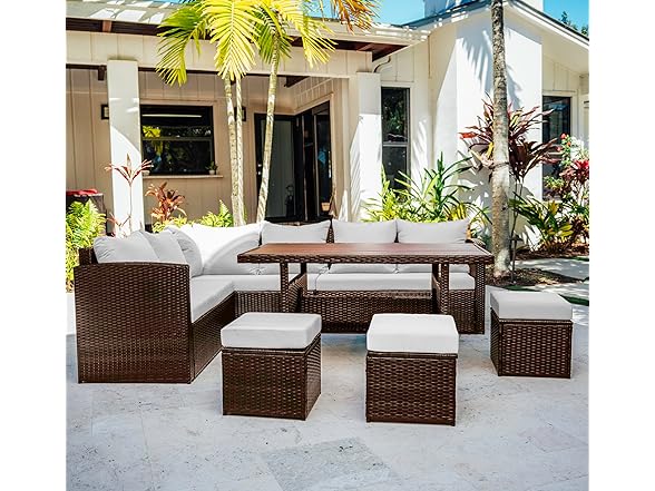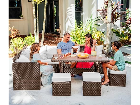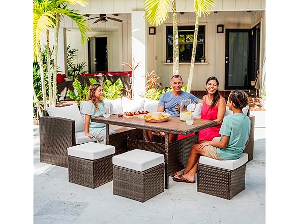 Nestl Wicker Outdoor Furniture Set - 7 Piece Patio Dining Set (Brown/Off White), X-Large
