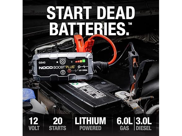 NOCO Boost Plus GB40 1000 Amp 12-Volt UltraSafe Lithium Jump Starter Box, Car Battery Booster Pack, Portable Power Bank Charger, and Jumper Cables For Up To 6-Liter Gasoline and 3-Liter Diesel Engines