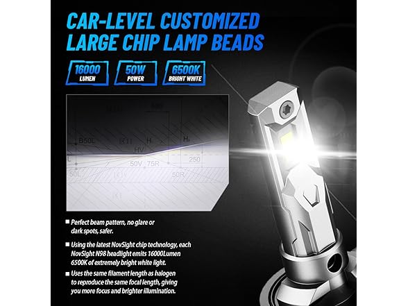 - Clear and Focused Beam Pattern:The NOVSIGHT 889/886/896/894 led fog light bulb feature an upgraded beam shape for clear, focused light with no dark spots. The precise beam tangent ensures that the light will not blind or disturb other drivers, providing optimal road coverage and safety