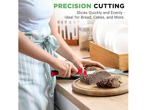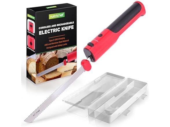 - STREAMLINING KITCHEN WORKLOADS: NutriChef’s electric bread knife swiftly and evenly slices through ingredients, saving valuable time and effort. Bid farewell to laborious cutting sessions and embrace efficiency in the kitchen.