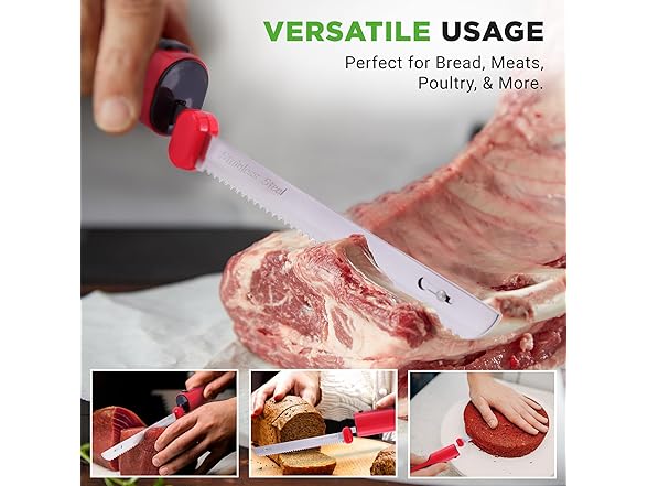 - ELEVATING CULINARY CRAFTSMANSHIP - This electric kitchen knife is a versatile powerhouse, from delicately slicing bread to precisely carving succulent roast. Elevate your culinary prowess and impress with perfectly sliced ingredients every time.