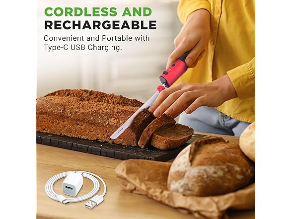 - ROBUST CONSTRUCTION - Crafted from ABS and stainless steel, this electric carving knife promises durability, resilience to daily use and ensures long-lasting performance, while the included USB cable and Type-C charger offer convenient power options.