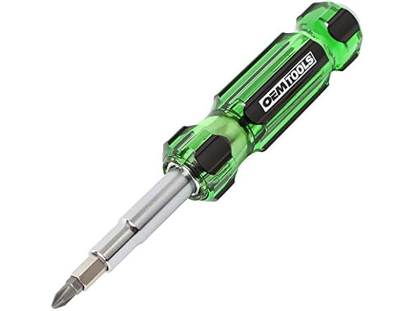The OEMTOOLS 22588 13-in-1 Multi-Bit Screwdriver, Nut Driver, and Schrader Valve Tool is designed to meet the diverse needs of automotive professionals. This versatile multi bit screwdriver combines 13 tools in one, including slotted, Phillips, square, and Torx bits, making it a must-have for various fastening tasks. The interchangeable shaft allows you to switch between 1/4", 5/16", and 3/8" nut driver sizes, offering adaptability in every situation. The handle is crafted from impact- and solvent-resistant acetate, ensuring durability even in harsh conditions. The blast-finished bits provide a secure grip, reducing cam-out and ensuring precise operation. The included Schrader valve bit adds functionality, making tire maintenance quick and efficient. Whether you're handling general maintenance or specific automotive repairs, this all in one screwdriver is built to perform. Compact and easy to use, it’s the perfect addition to any toolbox, offering the reliability and versatility you need for any job.