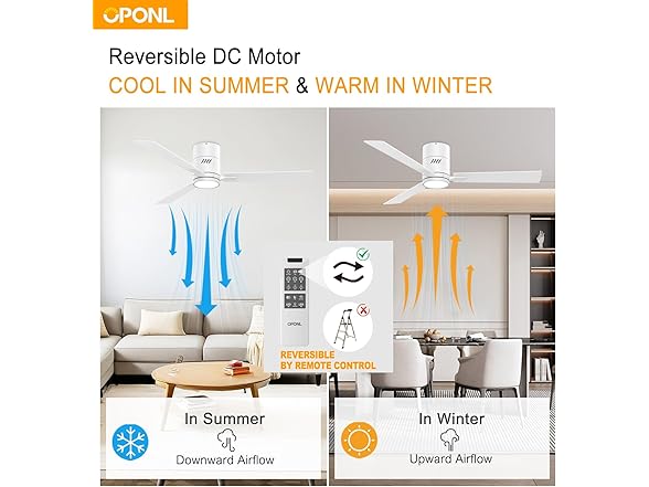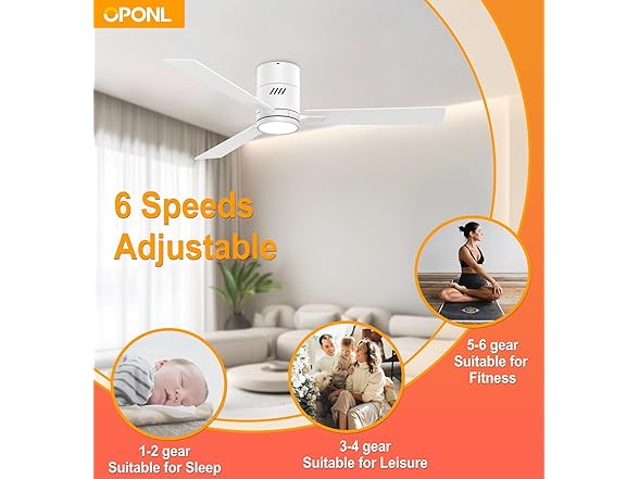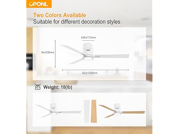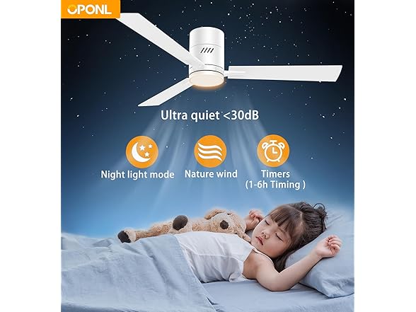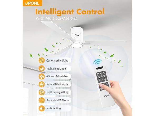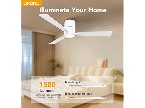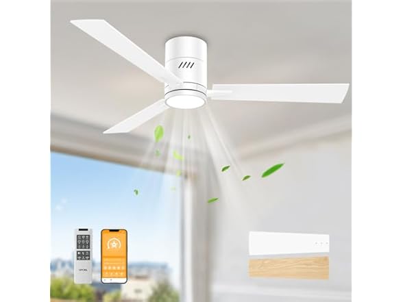 OPONL 52 inch Ceiling Fan with Light, Remote Control, Flush Mount, Noiseless, Reversible, 6CCT, Dimmable, 6 Speeds, Timeable, Low Profile Ceiling Fan with Light