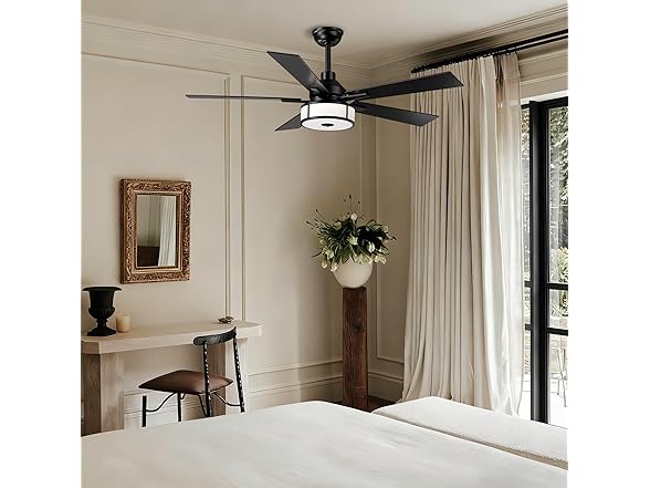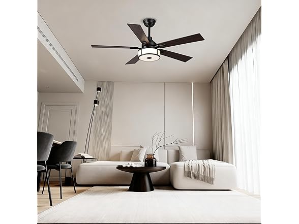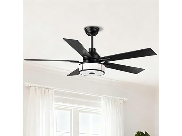Parrot Uncle 52 Inch Ceiling Fan with Lights and Remote Control, Modern Quiet DC Motor with 5 Reversible Blades, Stepless Dimmable LED, 6 Speeds & Timer