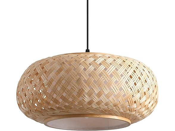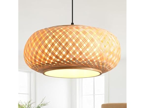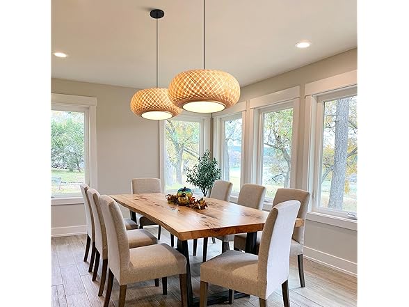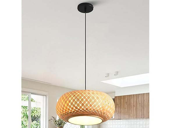 - 【Hand-Woven Natural Elegance】 Crafted from high-quality natural bamboo and premium iron, this pendant light features an intricate hand-woven pattern. The hollow-out shade creates a captivating interplay of light and shadow, bringing a warm, coastal, and bohemian vibe to any interior space.