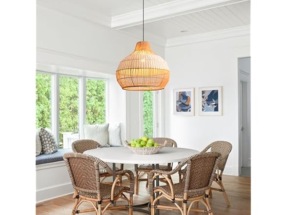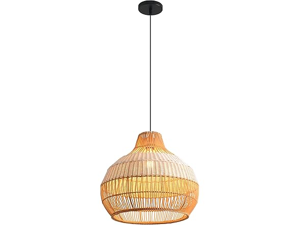 - 【Artisanal Hand-Woven Design】 Expertly crafted with natural rattan and premium iron, this 43 cm (17") pendant light features a unique two-tone weave. The intricate pattern creates a stunning play of light and shadow, bringing an organic, coastal warmth to any modern or farmhouse interior.