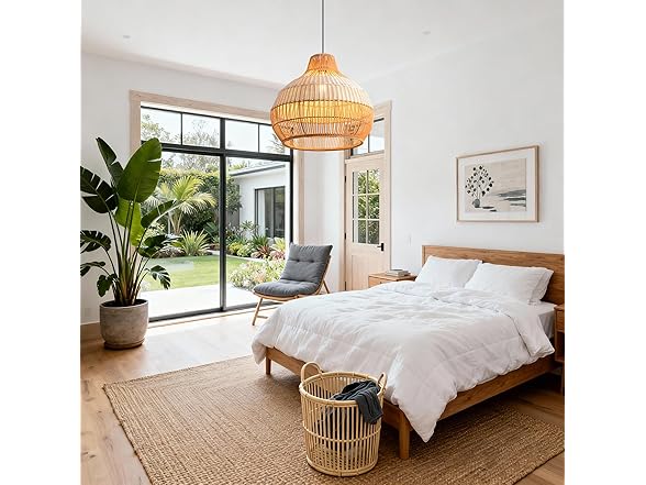 Elevate Your Home with the Warmth of Nature Transform your living space into a serene sanctuary with our Hand-Woven Rattan Pendant Light. This exquisite fixture blends traditional craftsmanship with contemporary design, featuring a 43 cm diameter basket shade that serves as a piece of functional art. The dual-layered weaving technique—combining natural rattan fibers with a crisp white accent—adds depth and texture to your ceiling, casting a soft, inviting glow that mimics the relaxed vibe of a coastal resort. Tailored for Modern North American Living Designed specifically for the aesthetic and functional needs of Canadian homes, this light is as versatile as it is beautiful. Whether you are illuminating a cozy breakfast nook, a grand entryway, or a bohemian-themed bedroom, the adjustable 120 cm cord allows for seamless integration into any room height. The matte black finish on the iron canopy adds a touch of industrial sophistication, ensuring it fits perfectly within farmhouse, Scandi, or eclectic decor styles. Specifications: Shade Diameter: 43 cm (16.93") Max Height: 160 cm (62.99") Adjustable Cord: 120 cm (47.24") Net Weight: 1.38 kg Material: Premium Iron, Natural Rattan, Protective Film Base Type: E26 (Max 60W, Bulb not included) Certifications: FCC & UL Listed for safety