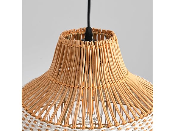 - 【Versatile Two-Tone Aesthetic】 Combining earthy natural tones with a clean white woven band, this hanging lamp complements diverse decors. The matte black canopy and hardware provide a contemporary contrast, making it a perfect focal point for your kitchen island or nursery.