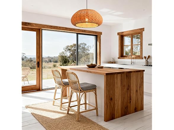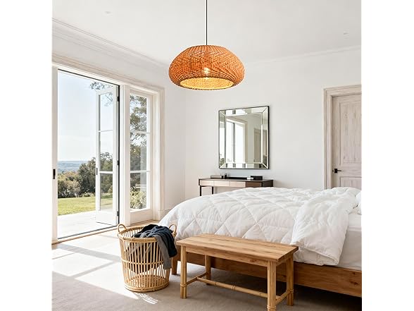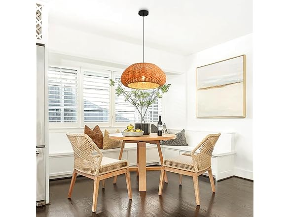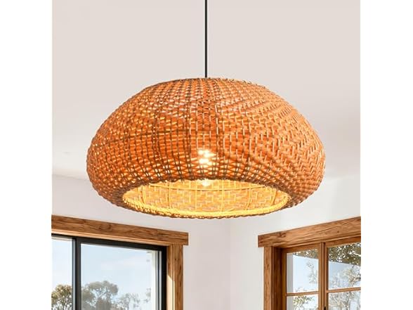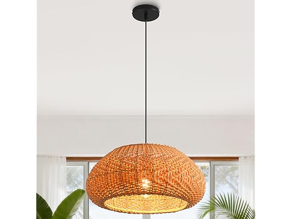Elevate your home’s ambiance with our 18.9" Natural Rattan Pendant Light, a masterpiece of handwoven artistry designed to bring nature indoors. Combining the rugged durability of an iron frame with the soft, organic texture of premium wicker, this farmhouse chandelier creates an inviting atmosphere that feels both sophisticated and relaxed. The dome-shaped shade measures 18.9" in diameter and filters light through its intricate weave, casting beautiful shadows that transform your ceiling light into a work of art. With an adjustable 47.24" cord, it effortlessly adapts to your space—whether you’re hanging it low over a dining table for an intimate dinner or high in a foyer to greet guests with a warm glow. Designed for the modern US home, it fits perfectly into Coastal, Japandi, and Mid-Century Modern interiors. The lightweight design (approx. 3.7 lbs) ensures safety and ease of installation. Compatible with standard E26 bulbs (60W Max), it offers the versatility to choose the color temperature that best suits your mood. Embrace the timeless beauty of artisanal craftsmanship and make this stunning boho hanging lamp the heart of your home lighting.