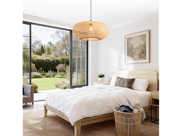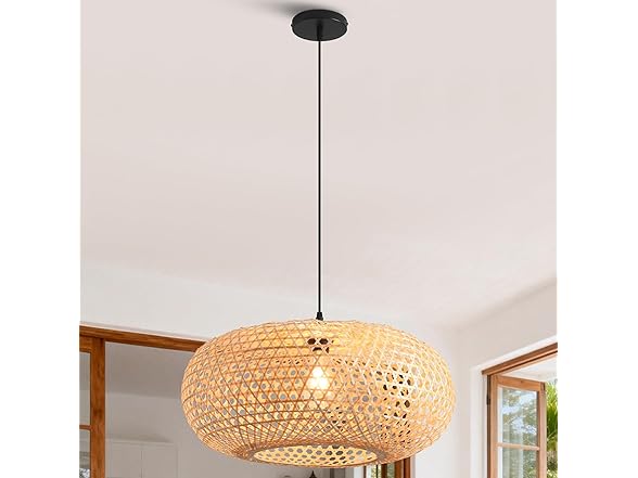 - Standard E26 Base & Easy Setup: This woven pendant light is compatible with various E26 bulbs (LED, Incandescent, CFL, or Halogen), supporting a maximum of 60W (Bulb NOT included). The lightweight design (only 1.1 lbs) and included hardware make installation quick and effortless.