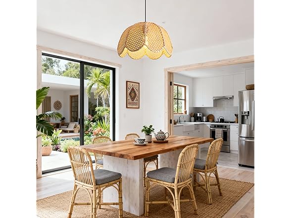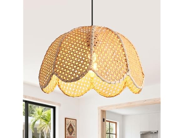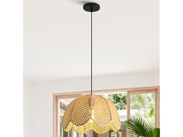 - [Easy Installation & Quality Build] Designed for hardwired installation. The pendant features a high-quality metal canopy and a durable black hanging wire. The internal iron structure ensures the rattan shade maintains its floral shape over time without deforming. Includes all necessary mounting hardware for a quick setup.