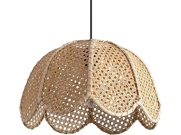 Elevate your home interiors with the Rattan Pendant Light, a perfect blend of bohemian artistry and functional lighting. Unlike standard dome lights, our fixture features a whimsical flower-petal silhouette, hand-crafted from premium natural rattan and iron. Why Choose Our Woven Chandelier? Ambient Charm: The airy, open-weave structure allows light to filter through gently, casting intricate shadows that add depth and character to your room. Nature-Inspired Design: Crafted from sustainable rattan materials, this ceiling light brings an organic, earthy touch to your living space, perfectly complementing farmhouse, coastal, and Japandi styles. Flexible Application: Whether you are updating a nursery, brightening a cozy reading nook, or hanging a trio over a kitchen island, the adjustable cord allows for versatile styling. Technical Specifications: Style: Boho / Coastal / Rustic / Farmhouse Material: Iron Frame + Natural Rattan + Cane Shade Dimensions: 15.75" Diameter x ~8" Height Total Max Height: 55.12 inches (with cord) Cord Length: 47.24 inches (Adjustable) Weight: 1.65 lbs (0.75kg) Bulb Base: E26 (Standard US) Max Wattage: 60W Bulb Included: No Dimmable: No (Fixture is non-dimmable)