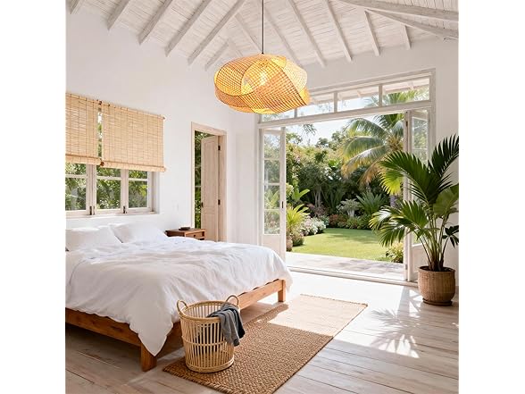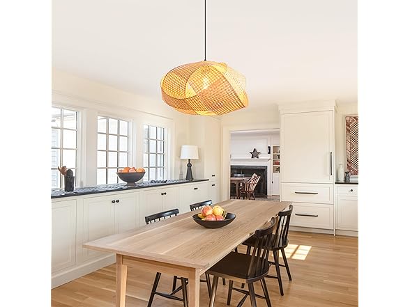- NATURAL ARTISAN CRAFTSMANSHIP: Hand-woven from 100% natural sustainable bamboo, this pendant light brings an organic, eco-friendly touch to your home. The intricate weaving technique ensures durability while showcasing the unique texture of natural fibers, making each ceiling light a one-of-a-kind art piece.