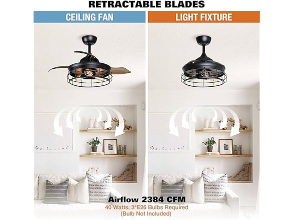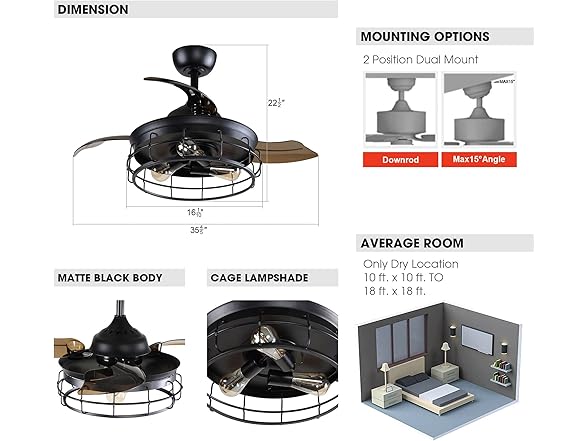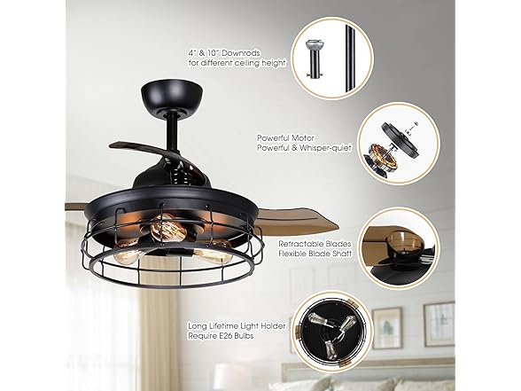 Parrot Uncle F3504QQ110V-PU 36 Inch Retractable Ceiling Fan
