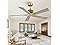 Product Description: This 52-inch modern ceiling fan features a sleek brass motor housing with woven texture and 5 light wood-grain blades, blending bohemian style with functional airflow. Powered by an energy-efficient 23W DC motor, it operates quietly while delivering up to 4083 CFM at 176 RPM, ideal for dry indoor spaces like bedrooms, living rooms, and studies (best for rooms up to 15' x 15'). With 6 adjustable speed settings and 1/2/4/8-hour timer functions, it offers personalized comfort and convenience. The flush-mount design fits sloped ceilings, making it a stylish, practical upgrade for your home. Product Specifications: - Size: 52-inch DC Ceiling Fan - Power Consumption: 23W - Application: Dry indoor spaces only - Recommended Room Size: Ideal for rooms up to 15' x 15' (225 sq. ft.) - Speed: 176 RPM - Airflow: 4083 CFM - Speed Settings: 6 adjustable speeds - Timer: 1/2/4/8-hour programmable timer Package Includes: - 1x Remote Control - 1x 6-Inch Downrod - 1x Ceiling Fan (No Light Kit Included) - 1x Instruction Manual