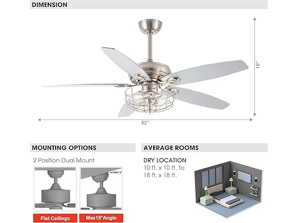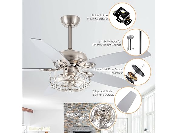 Parrot Uncle F6236Q110V-PU 52 Inch Industrial Ceiling Fan