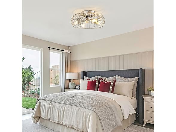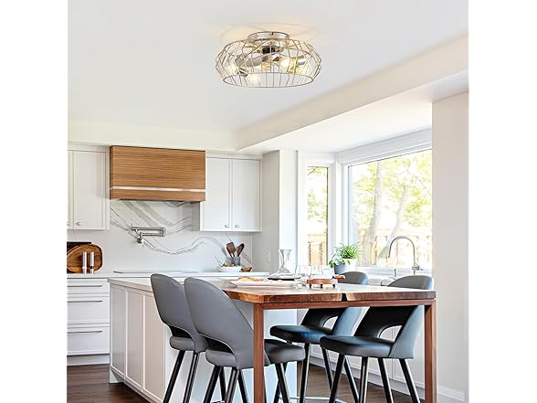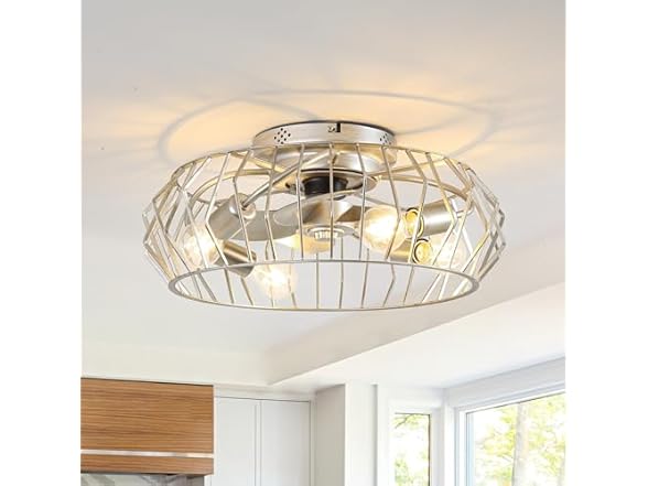 Parrot Uncle Low Profile Ceiling Fan with Lights, Modern Flush Mount Chandelier with Remote Control and APP, 6-Speed Reversible DC Motor, Indoor Outdoor