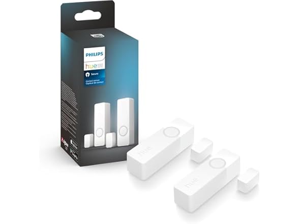 In the Box: (1) Philips Hue Secure Smart Contact Sensor, White - 2 Pack - Made for Indoor Doors and Windows - Requires Hue Bridge - Works with The Hue App