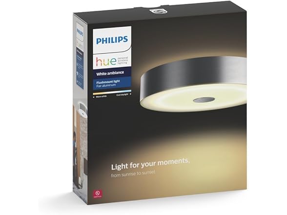 - This box includes one Philips Hue White Ambiance Fair Flushmount Light with manual and two-year warranty.
