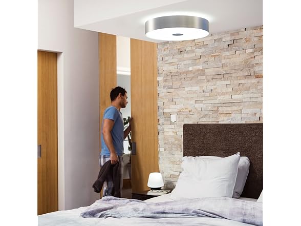 - Install it anywhere you would a standard overhead or wall light and pair it with the Hue Bridge, which allows you to control this and other Philips Hue lights via the Philips Hue App.