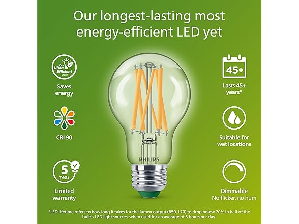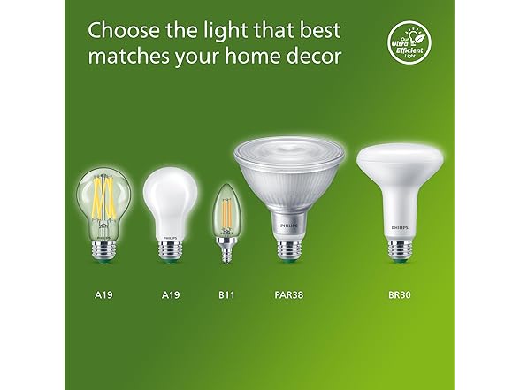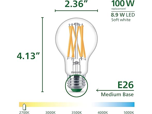 Philips LED 100W A19 8-Pack Ultra Efficient Soft White (2700K) 1520 Lumen (8.9W = 100W) Dimmable Clear Flicker-Free Light Bulbs