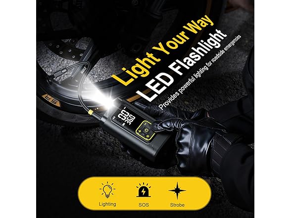 - 🖥️【Precision Digital Control, Zero Guesswork】Achieve perfect pressure with absolute ease. The air pump for car tires has large LCD screen accurately displays real-time and preset readings in multiple units (PSI/BAR/KG/CM²) with tire pressure gauge. A clear battery indicator ensures you're never surprised by a low charge, putting you in complete control
