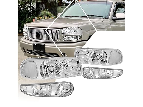 PM PERFORMOTOR PMHL-DENALI-0106-OH-CC Chrome Housing Clear Corner Pair of Headlights Replacement Compatible with 00-06 Yukon / 02-06 Sierra 1500 Fits Denali models Only