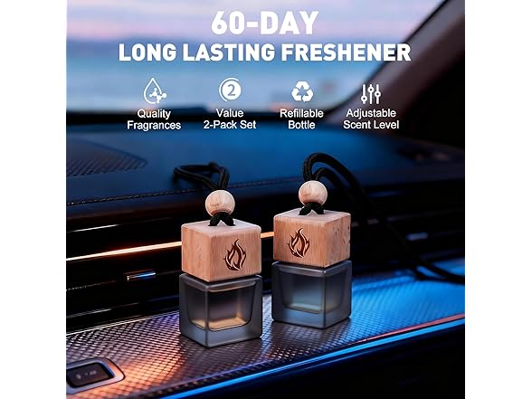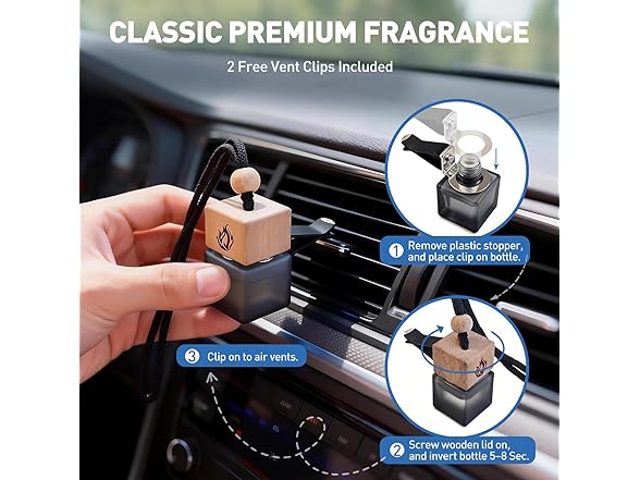 - LONG LASTING FRESHNESS: Each pack includes two 8ml essential oil bottles, designed to release a gentle, consistent fragrance. Depending on usage frequency and environment, the aroma can last approximately 45-60 days per bottle—ideal for daily commutes, road trips, or vehicles stored in garages. This long-wearing formula helps minimize frequent replacements, bringing you convenient and reliable freshness for your car.