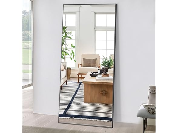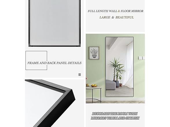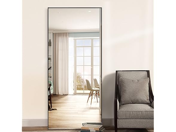 Poshions Big Mirror 71‘’×24‘’ Full Body with Stand, Wall Mount with Black Thin Aluminum Alloy Frame