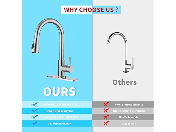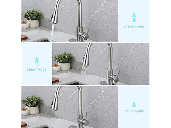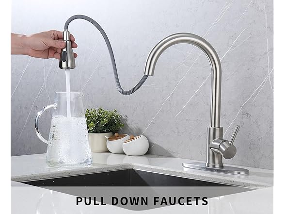 - ✅EFFICIENT CLEANING: The pull-down sprayer offers efficient cleaning, allowing you to reach every corner of your sink with ease.