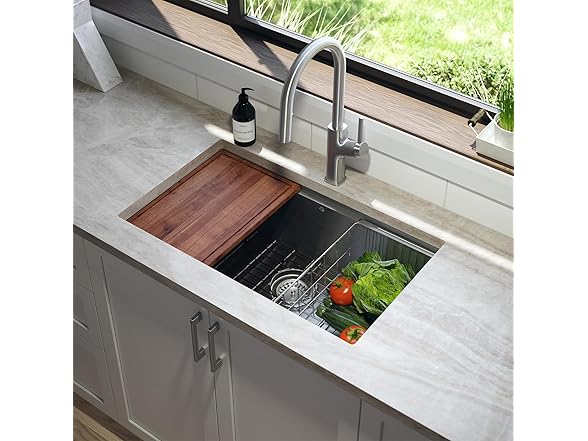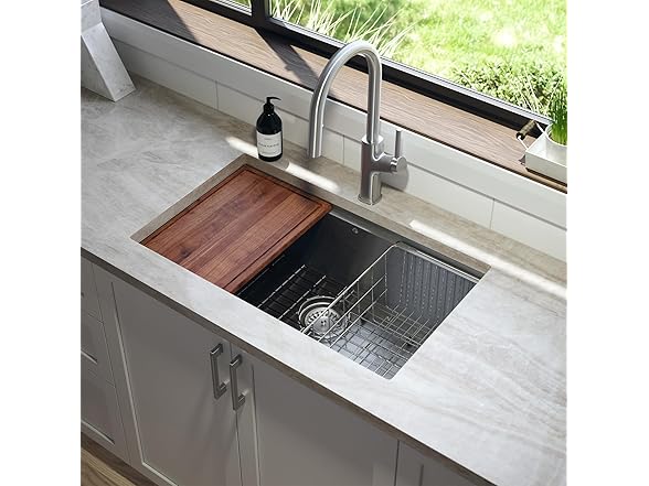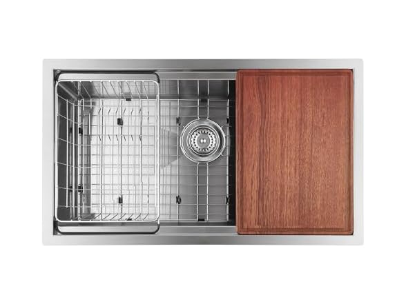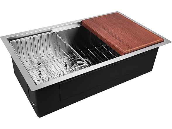 PULSE ShowerSpas SCS-3018SB-SSB Santa Cruz 30" Workstation Kitchen Sink with Cutting Board, Draining Basket, Bottom Rack, and Drain Strainer/Stopper, 18 Gauge Stainless-Steel, Brushed Stainless-Steel