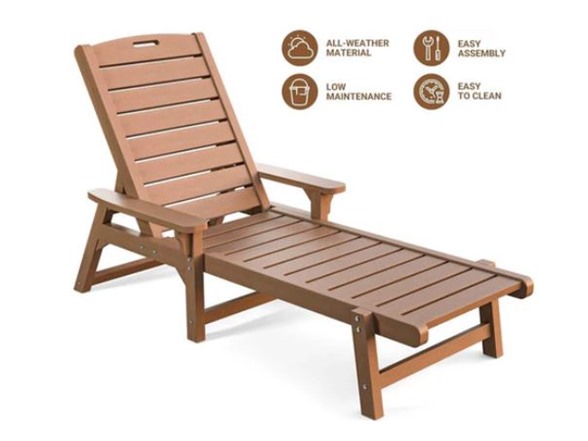 - Easy Maintenance: Cleaning this lawn lounger is a breeze. Simply use warm water, soap, and a bristle brush to remove dirt from the poly wood grain texture. For stubborn stains, the included sanding sponge will do the trick. With minimal effort, your chaise lounge will stay looking fresh and inviting.